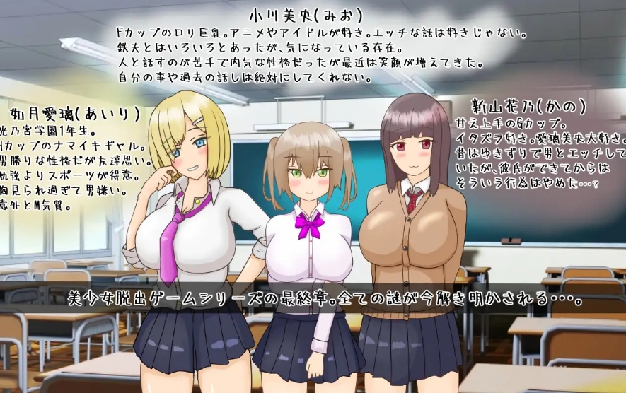 小川未央是该系列的第三位也是最后一位主角!从第一款游戏开始,她就一直是个谜,但现在一切终于揭晓了!这款逃脱游戏中的情色场面大多是 “NTR”!